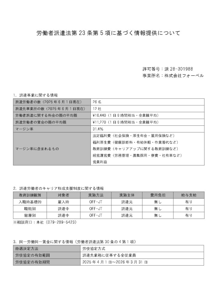 労働者派遣法第23条第5項に基づく情報公開